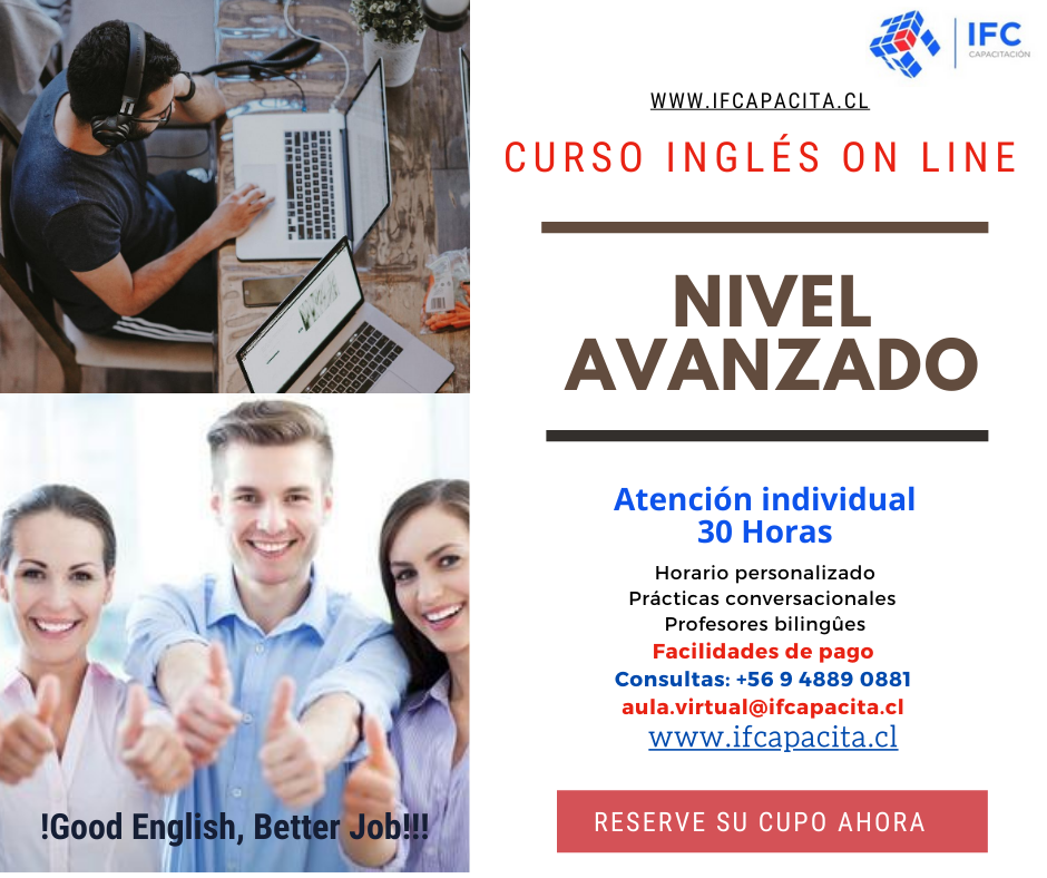 Curso de inglés que prepara al estudiante en temática de profundización avanzada en el idioma inglés, se debe aprobar examen de diagnóstico.