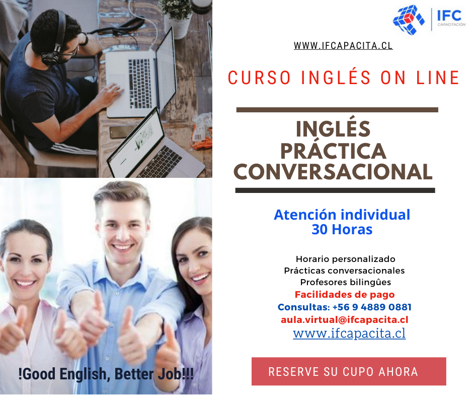 Curso de inglés a nivel de conversación. Lecturas generales y conversaciones sobre el material leído con el tutor.