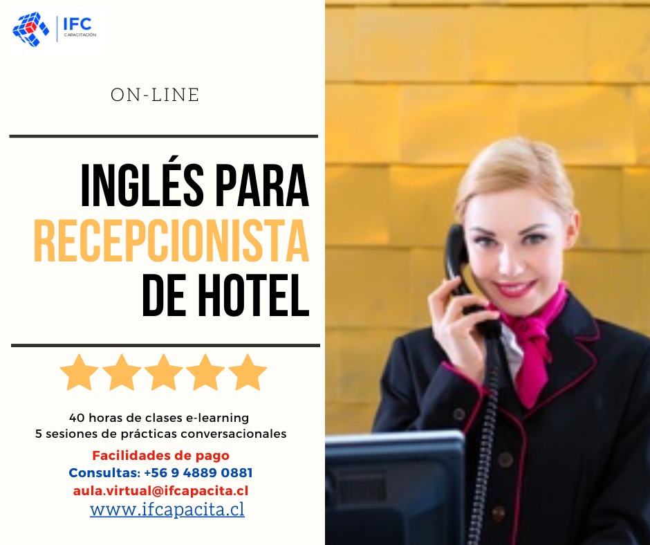 Curso de inglés para personas que se encuentren en el área de recepción de hoteles y deban relacionarse con personas angloparlantes.